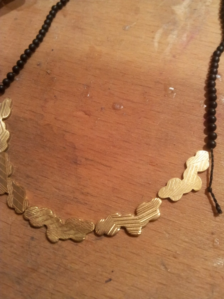 Besonders angetan hat es mir die Ganskehlenkette. Ich drehte mir hiervon 1,5m, glühte sie und baute daraus zwei Armreifen und einen Kettenanhänger. Alle drei Schmuckstücke müssen jetzt nur noch vergoldet werden.